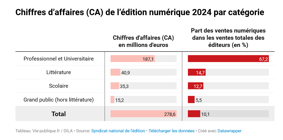 | Les chiffres clés de l’édition en 2024 (source : rapport du Syndicat national de l’édition) |